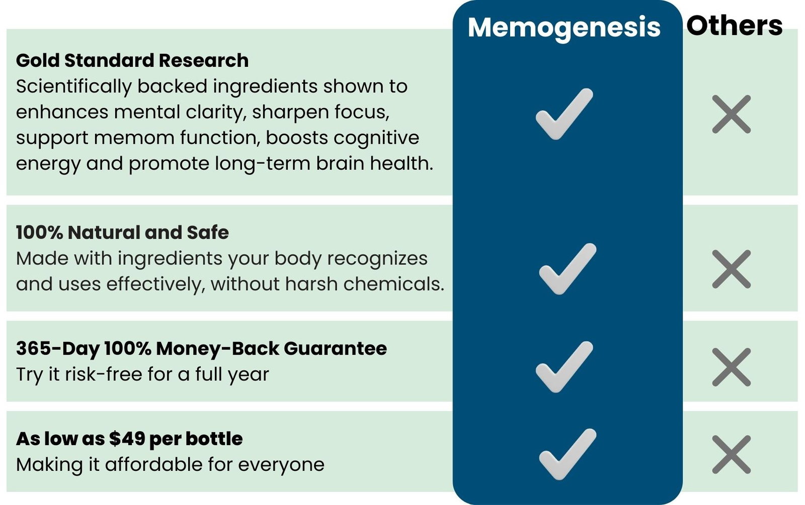And with our 365-day, no-questions-asked money-back guarantee, MemoGenesis offers a completely risk-free way to reclaim mental sharpness, emotional balance, and long-term cognitive health—naturally, safely, and effectively.